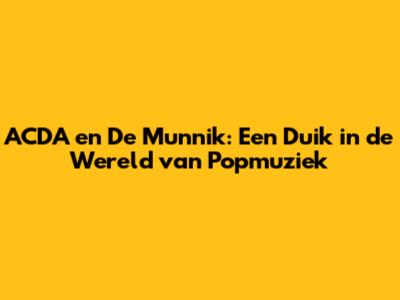 ACDA En De Munnik: Een Duik In De Wereld Van Popmuziek