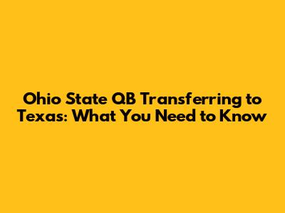 Ohio State QB Transferring To Texas: What You Need To Know