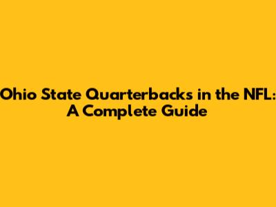 Ohio State QBs In The NFL: A Complete Guide